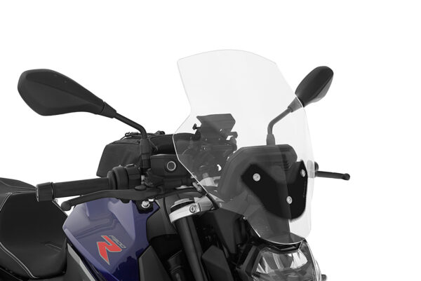 La cúpula para carenado »MARATHON« F 900 R, de eficacia probada, aporta una mayor seguridad pasiva y permite conducir de una manera relajada durante trayectos largos sobre esta BMW popular gracias a sus elementos ergonómicos y la protección eficaz frente al viento y las inclemencias meteorológicas que proporciona. Asimismo, descarga la presión del viento de la cabeza, el tronco y los hombros de una manera óptima y reduce notablemente las sacudidas. Así, la cúpula »MARATHON« despliega todo su potencial tanto en trayectos largos como cortos y en cualquier estación del año. Por lo que proporciona la máxima protección y una ergonomía perfecta para personas de cualquier estatura. En resumen, se trata de una cúpula que no solo no resta carácter a esta BMW, sino que lo realza aún más con su forma integrada.